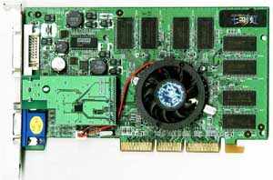 2 pro核心显示卡芯片,64MB DDR及其18微米的工艺设计,用以全面替代GeForce