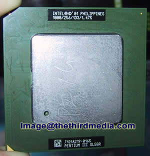 从照片上读者朋友们可以读出(1000/256/133/1.475),也就是说它的主频是1G的,具有256K缓存,133M外频,核心电压1.475V;另外,我们还能读出这款PIII的序列号SL5GR 。看到1G的图拉腾PIII,想起去年6月大家还认为图拉腾PIII的首款主频是1.13G呢。